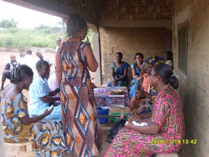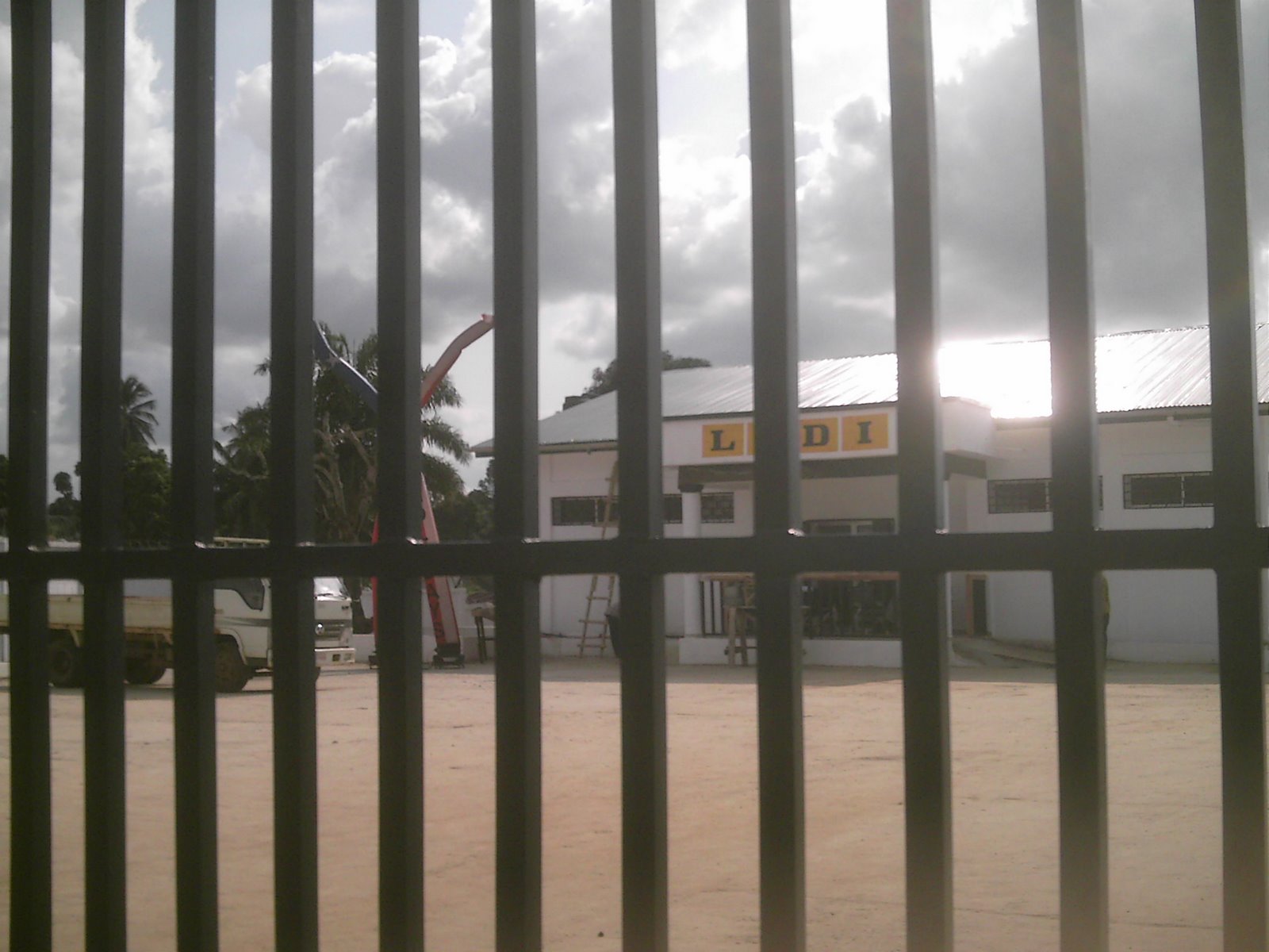 Picture 1 is our cook, Alice, who is very sweet and works very very hard. The next photo is in Gbarnga, it’s the new bank that was prepared for the Independence day celebration, you can’t really see it but in there is a “wacky wavy inflatable arm flailing tube man” that made many many people stop and stare. Yes, it’s air that’s keeping it up. The next photo is of the presidential house that i first took a photo of with the burned out guard center. You can see some progress, but it was getting dark. The last picture is of a women’s group that B’s a part of that pulls money together and supports each other when something bad happens, which seems to happen a lot.